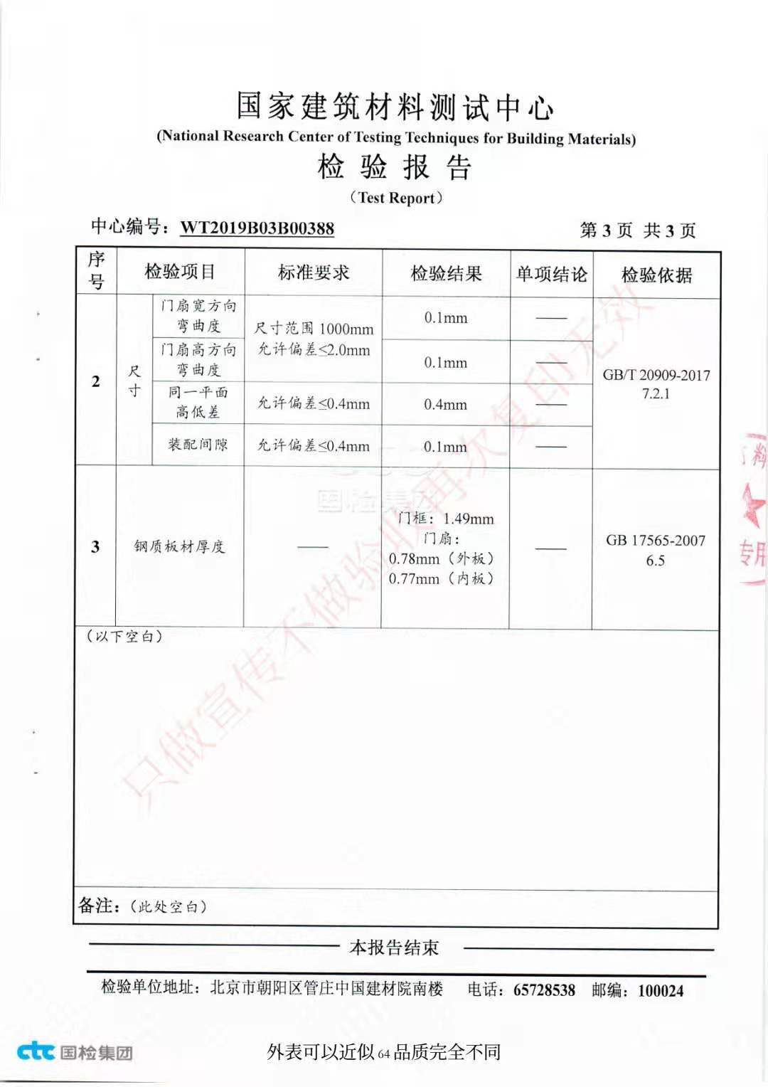 钢质门检测报告系列